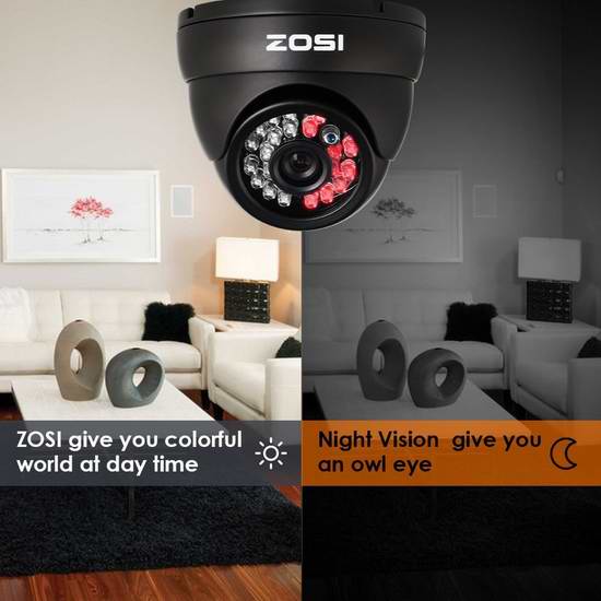 ZOSI 720P 1280TVL 8路高清监控系统 179.34加元限量特卖并包邮!