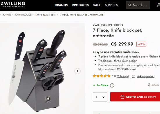 白菜价!Zwilling 双立人 Tradition 不锈钢刀具7件套2.9折 169.99加元包邮!