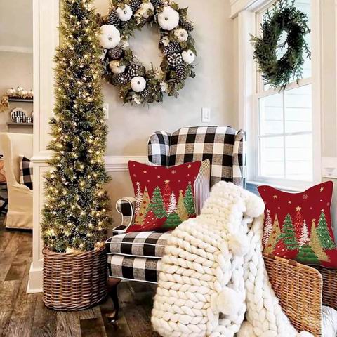 采用优质亚麻布料制成,质感自然耐用、透气性好,可机洗且不褪色、不起球,适合有小孩或宠物的家庭使用。枕套比枕芯略小以确保贴合,图案印于正面,包装不含枕芯。红色圣诞树图案营造温馨农舍风,能轻松融入各种冬季与节日装饰,为沙发、床、门廊或户外布置增添节日气息。隐藏式拉链方便拆洗与更换,同时保持整体外观精致,是家居点缀或赠礼的理想选择。
